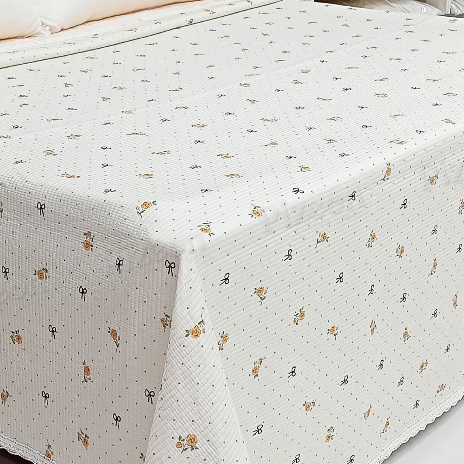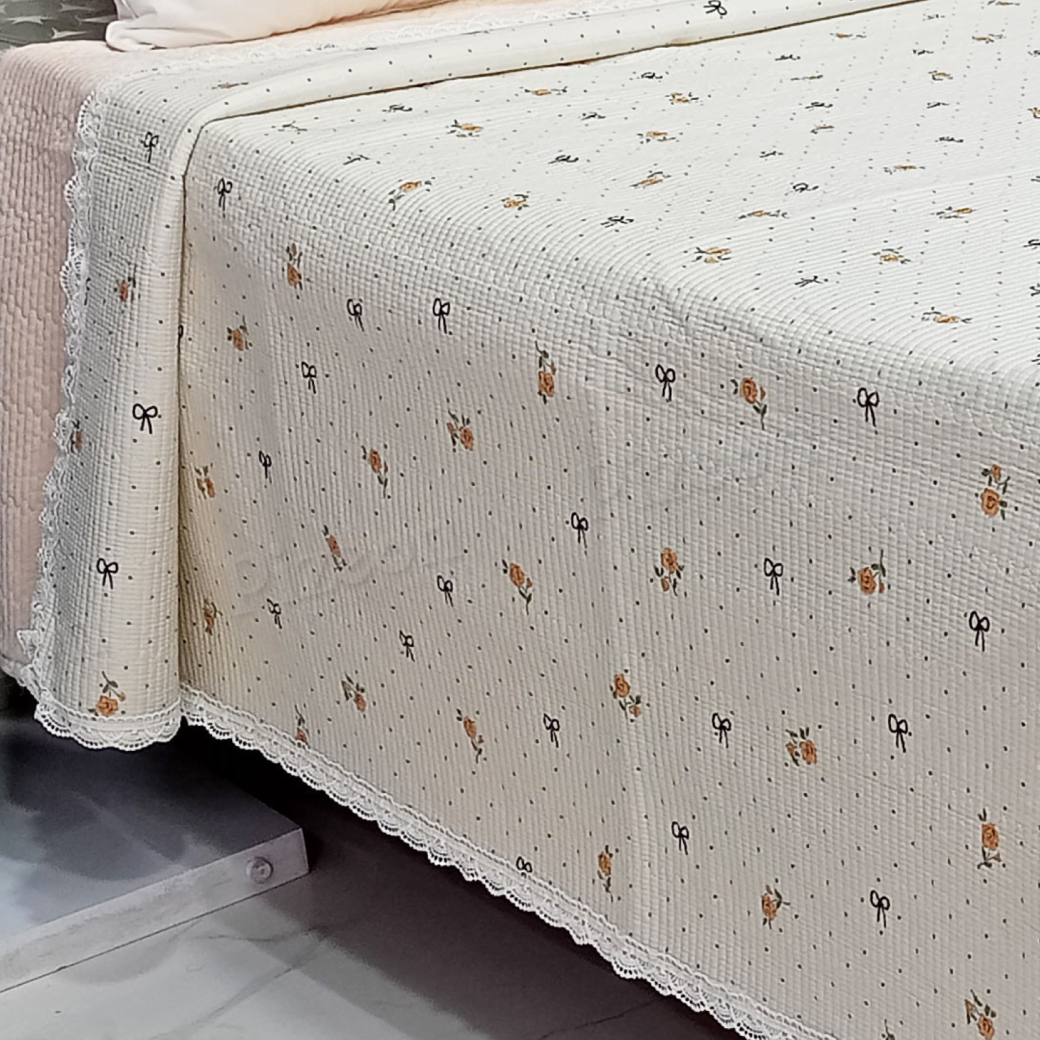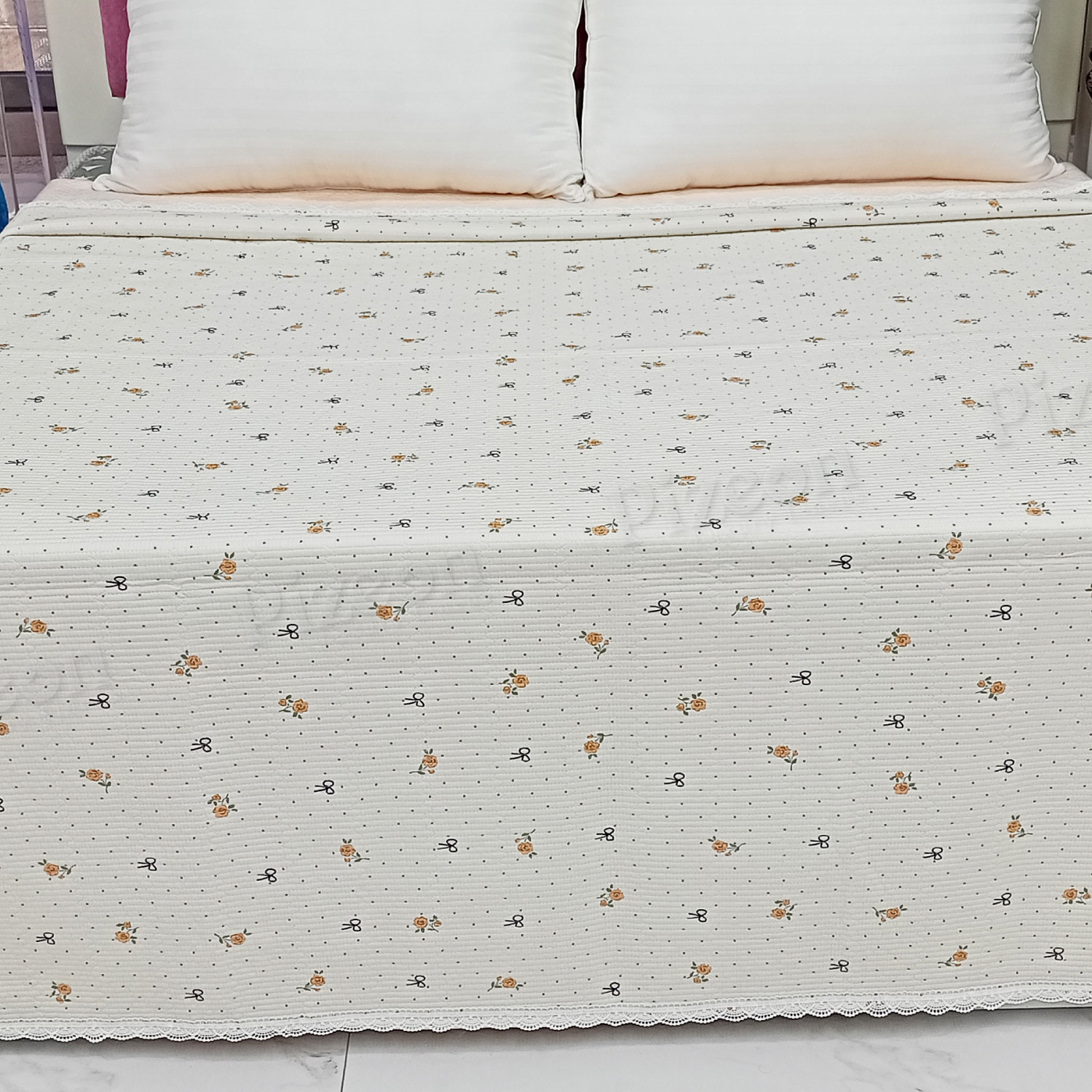 Upgrade your bedding experience with this luxury imported all-over print summer quilt, crafted for both elegance and comfort. Featuring a lightweight virgin silk fiber filling and a premium quilted cotton exterior, it delivers year-round coziness — especially ideal for AC rooms and warmer climates. With a king-size dimension of 6.6 × 7.6 feet, it offers generous coverage for double, queen, and king beds while maintaining a soft, breathable, and skin-friendly feel.