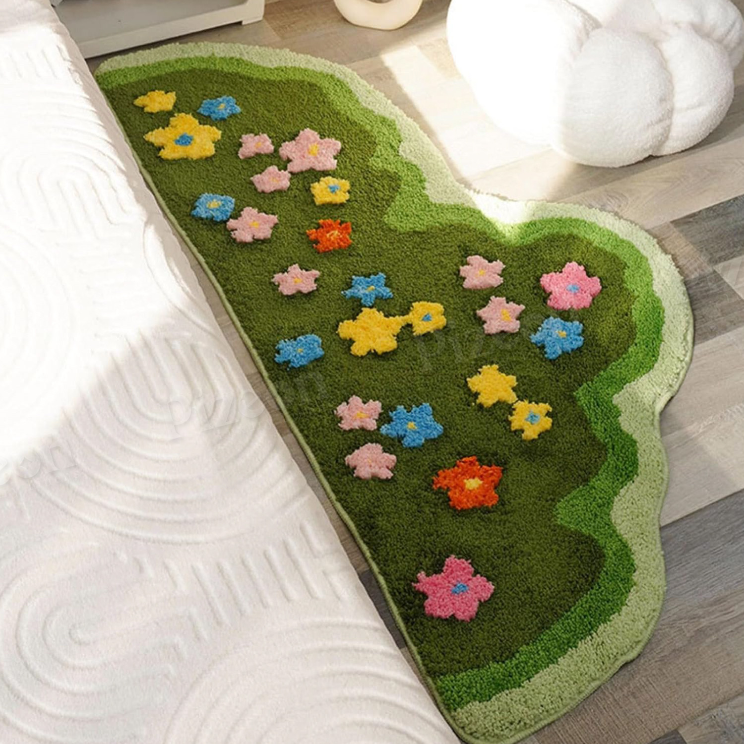 Product Type: Irregular Green Bedside Rug / Floor Mat