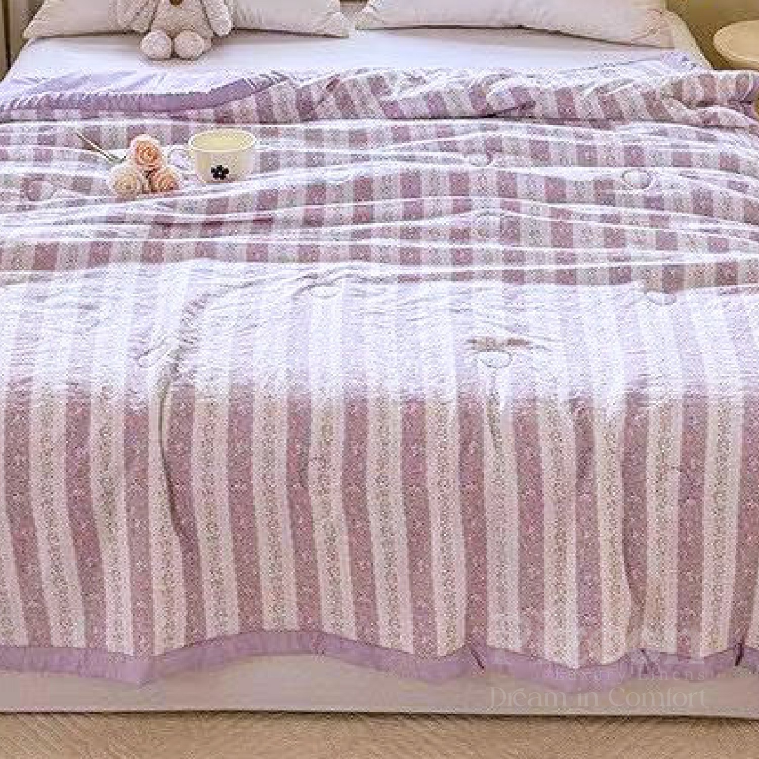 Summer Cooling Quilt | Floral Double Bed Quilt | Lightweight AC Room Blanket | Moisture-Wicking Summer Bedding | Breathable Polycotton Comforter | Washable Thin Quilt | Soft Floral Bedspread | Bedroom Decor Blanket | Non-Stuffy Summer Throw | Travel-Friendly Quilt for Summer