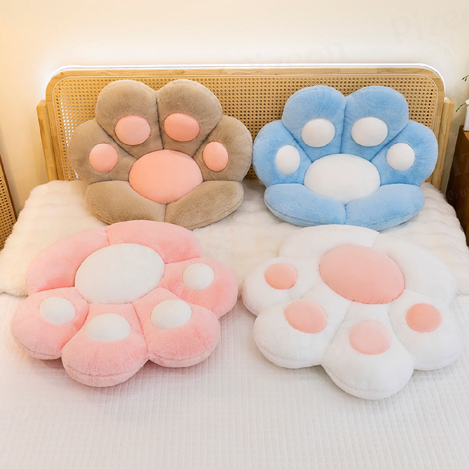 bear paw cushion, plush chair pillow, kawaii sofa cushion, cute stuffed seat cushion, cozy floor mat, PP cotton plush pillow, room decoration cushion, kawaii home accessories, soft plush sofa pillow.