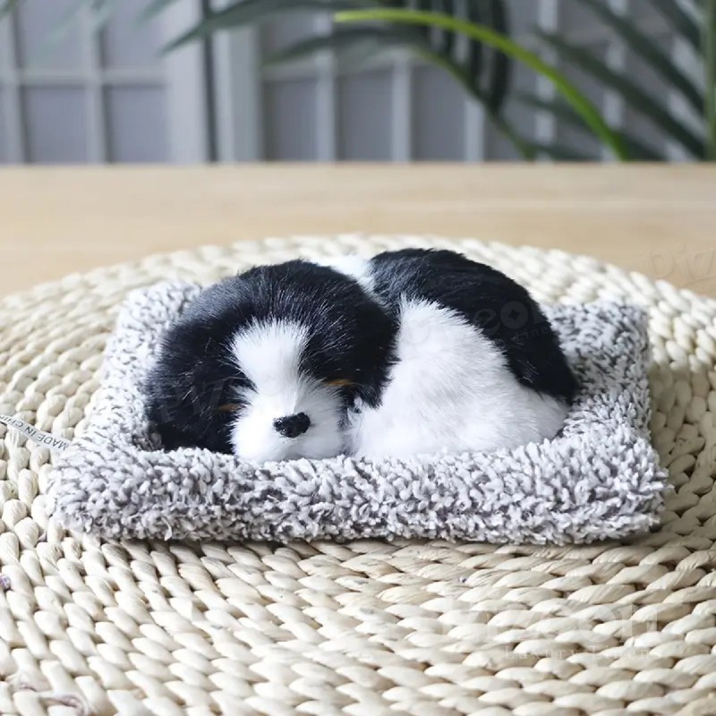 Miniature Sleeping Dog Figurine with Bamboo Charcoal – Realistic Plush Car & Home Decor, Air Purifier Gift