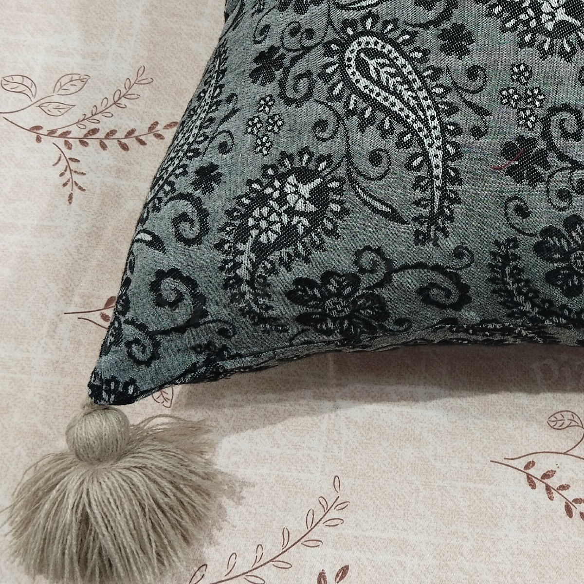 Tassel Long Bolster Pillow with Corner Design, Vintage Long Decorative Tassel Pillow In Bangladesh